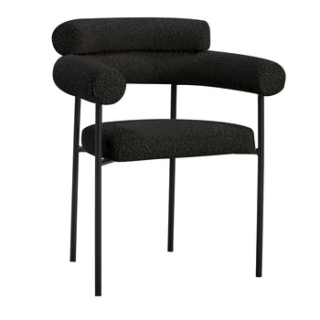 Silla ocasional Burgos, tapizada en acabado lamb de textura suave y acogedora que aporta calidez y confort visual al espacio. Su diseño contemporáneo de líneas redondeadas invita al descanso, mientras que el tapizado tipo borrego añade un toque moderno y decorativo. Las patas metálicas en color negro generan un contraste elegante, ofreciendo solidez y estabilidad sin perder ligereza estética. Una pieza versátil, perfecta como asiento auxiliar en salas de estar, rincones de lectura o espacios lounge con carácter sofisticado y actual.