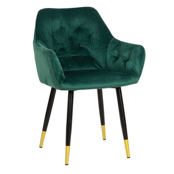 La SILLA OCASIONAL HELI VELV combina diseño y funcionalidad con un acabado en terciopelo disponible en verde, negro y azul. Su estructura robusta ofrece comodidad y durabilidad, ideal para espacios que buscan un toque sofisticado sin sacrificar resistencia. Perfecta para ambientes modernos, esta silla aporta elegancia y confort en cada uso.